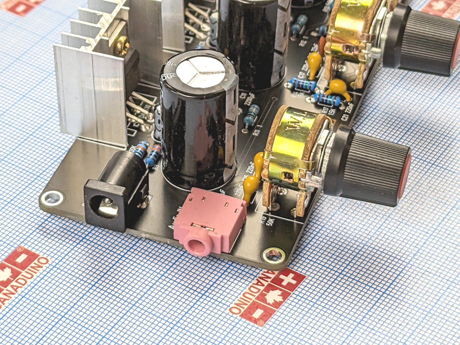 What you get for 15 bucks here is pretty impressive. As a soldering kit, it’s a nice way to spend an hour or two… ideal for anyone who wants to dip their toes into amp design. As with all of the Canaduino kits, the PCB is high quality, silkscreen is clear and there are no inconsistencies that I noticed between the board and the schematic. Minor thing, but I think it would be cool if some of these kits shipped with some standoffs, as the PCB is cut for them. I received a whole bunch of extra resistors and ceramic caps on all of the 4 of these I’ve bought, which is always appreciated!